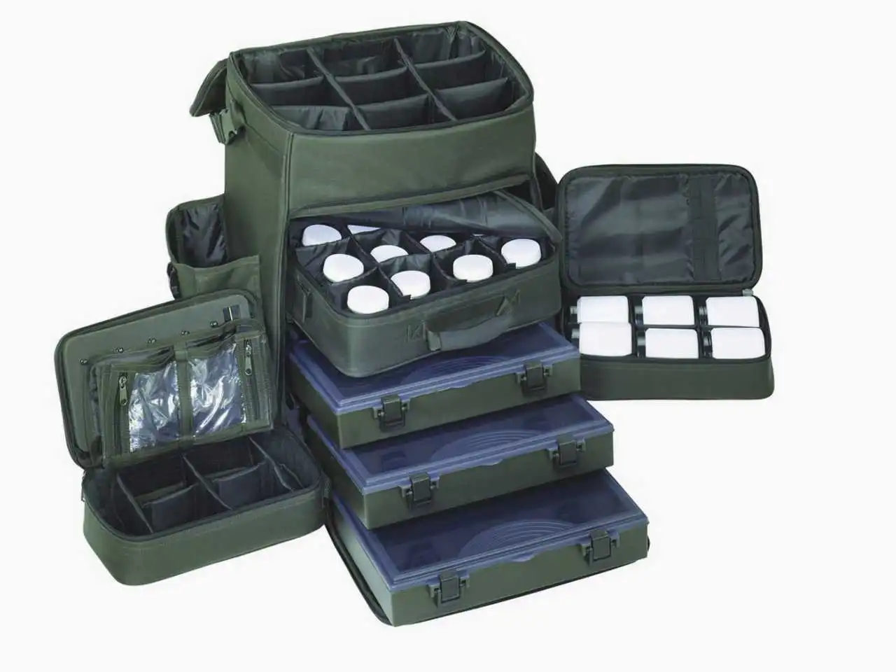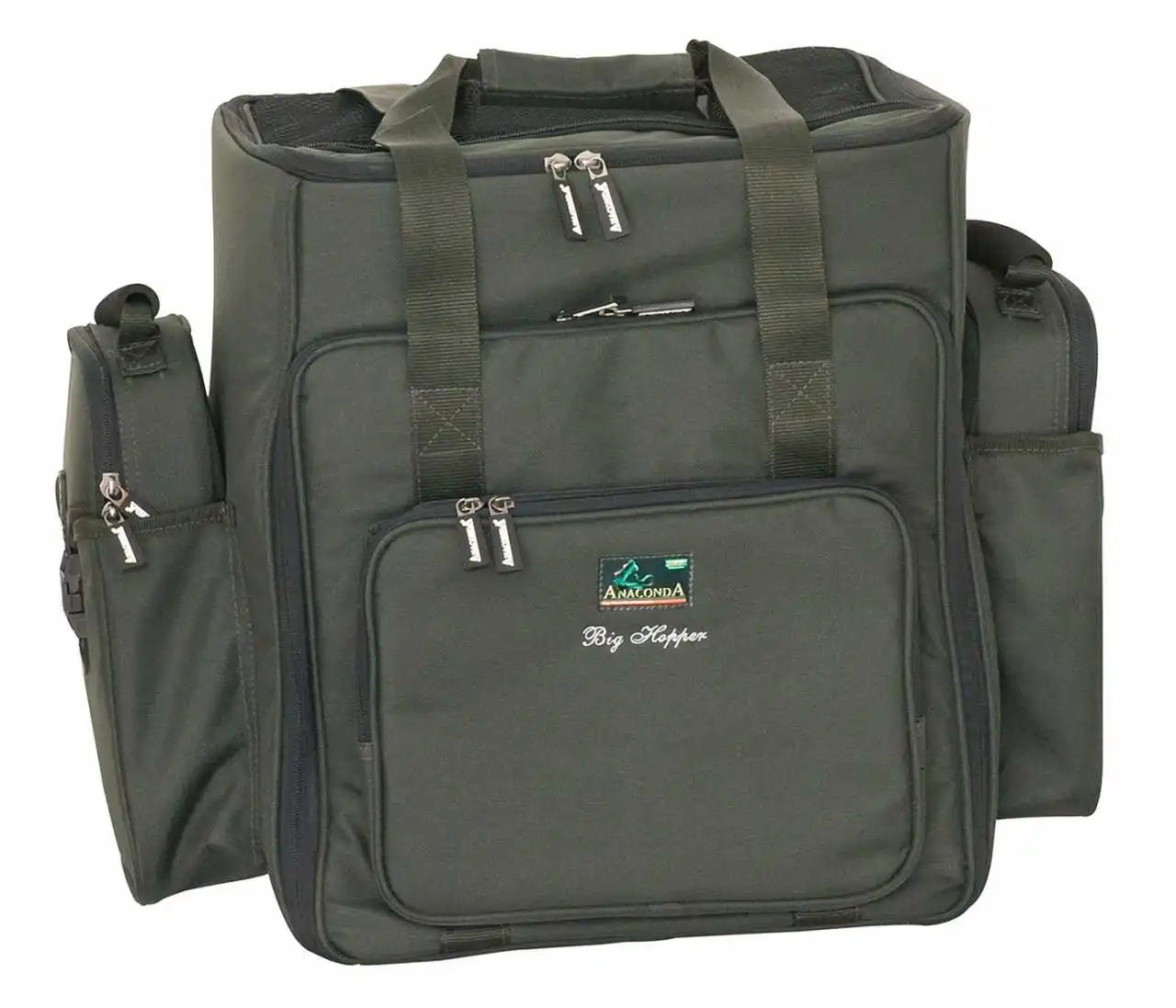 Mit den Big Hopper haben wir einen weiteren innovativen Rucksack – speziell für Karpfenangler – die gerne „All in One Taschen“ verwenden. Er ist ein feststehender Rucksack mit Schubladen System. Im Inneren befinden sich 3 Tackle Chest Large Boxen und eine separate Tasche inklusive 12 transparenten Bait Bottles zum Aufbewahren von gedippten Boilies, Pop Up´s oder sonstigen Baits.