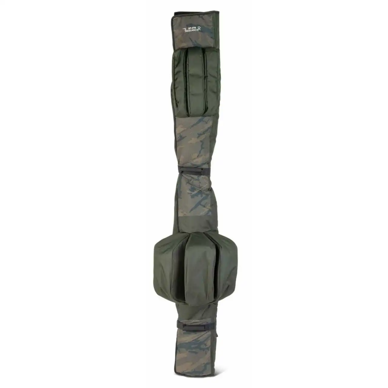Der Name dieses Angelzubehörs lässt es vermuten, hier ist richtig viel Platz vorhanden und Ihr habt in der Angeltasche genügend Freiheit für bis zu 6 Angelruten auf eurem nächsten Angeltrip. Neben euren Angeln finden ohne Probleme wichtige Utensilien wie Kescher, Bleie, Köder uvm. Platz. Die großen Aussparungen eignen sicher hervorragend für Big Pit Rollen bis zu einer 14000 er Größe. Die Gesamtlänge der Rutentasche beträgt 200cm. Damit könnt Ihr 3 montierte und 3 unmontierte Angelruten transportieren.