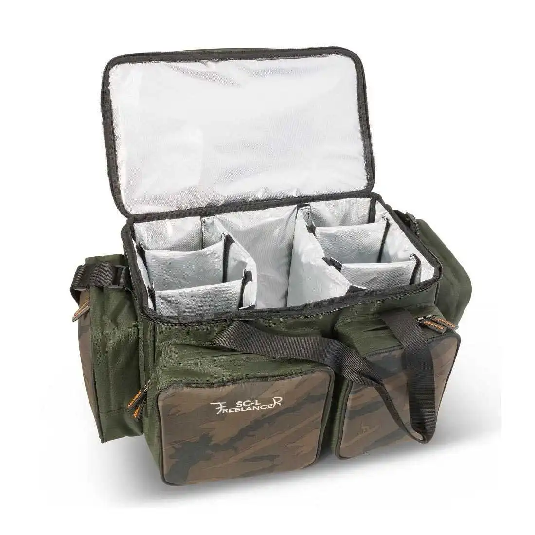 Der Innenraum ist durch die klettbaren Trennwände variabel gestaltbar während die aufgesetzten Außentaschen viel Platz für jegliches Zubehör oder Proviant bieten.
