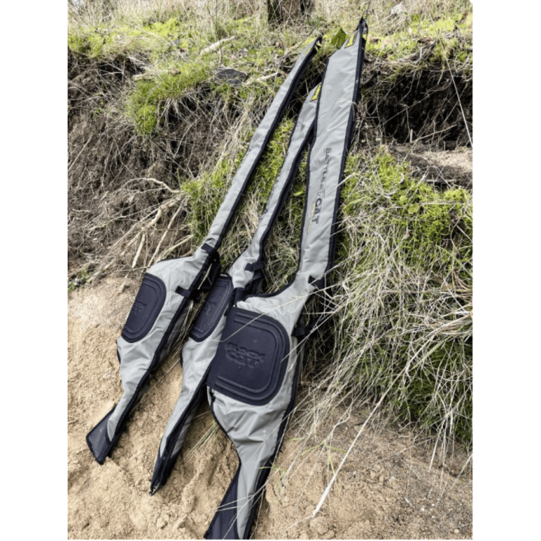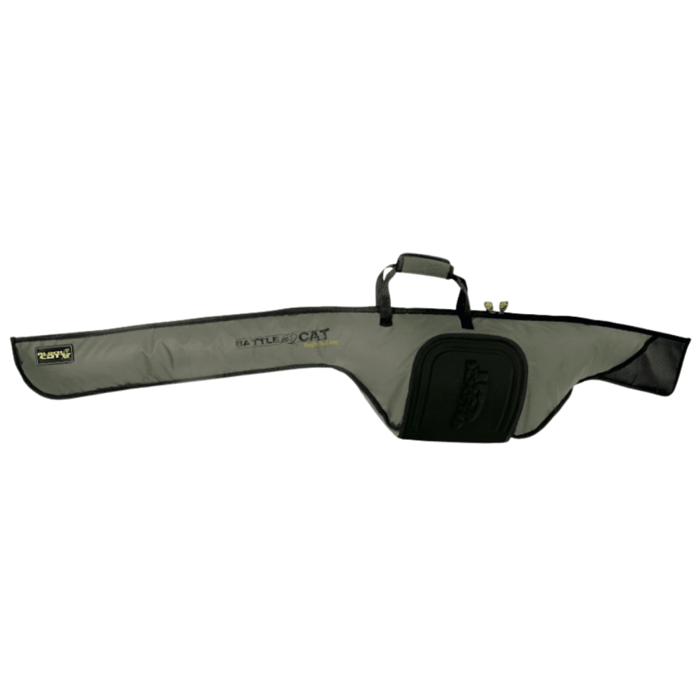 Robuste Einzelruten-Transporttasche für montierte Welsruten mit starkem Griff und extra großer Rollentasche, so dass auch Multirollen und große Stationärrollen ausreichend Platz finden. Die Tasche kann durch einen durchgängigen Reißverschluss auf der gesamten Länge geöffnet werden.