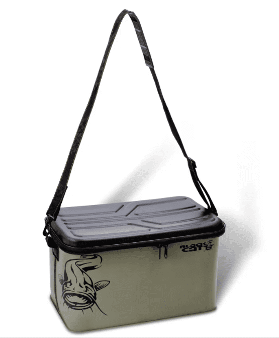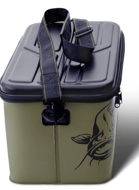 Versehen von einem Hardtop Deckel mit Reißverschluss, der über den Rand hinweggeht und so das Eindringen von Regenwasser verhindert. Ausgestattet mit Umhängegurt und Henkeln zum Tagen, eignet sie sich sowohl fürs Ufer- als auch Bootsangeln.