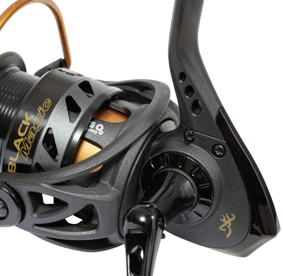 Zurecht trägt diese Rollenserie den Namen Black Magic, er steht für ein tolles Preis-Leistungsverhältnis. Zwei gefederte Schnurclips mit großen Aussparungen gewährleisten ein leichtes Einclippen der Schnur, der solide Schnurfangbügel sorgt für eine optimale Balance des Rotors, die großen Fräsungen reduzieren das Spulengewicht und sind ein schöner Blickfang. Black Magic, wie immer: großartige Ausstattung für kleines Geld.