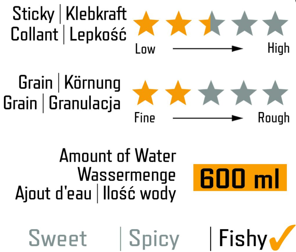Eine ganz neu entwickelte Futterserie speziell für das Angeln auf große Fische mit dem Method Korb. Im Green Mussel verwenden wir eine Mischung verschiedener gemahlener Pellets in bester Qualität, angereichert mit weiteren Zutaten und verfeinert durch ein Aroma, das dieser Mischung ihren letzten Schliff gibt. Es löst sich leicht aus dem Korb und bildet innerhalb kürzester Zeit einen grünen Teppich auf dem Gewässergrund und lockt damit Karpfen, Brassen und weitere große Weißfische auf den Futterplatz.