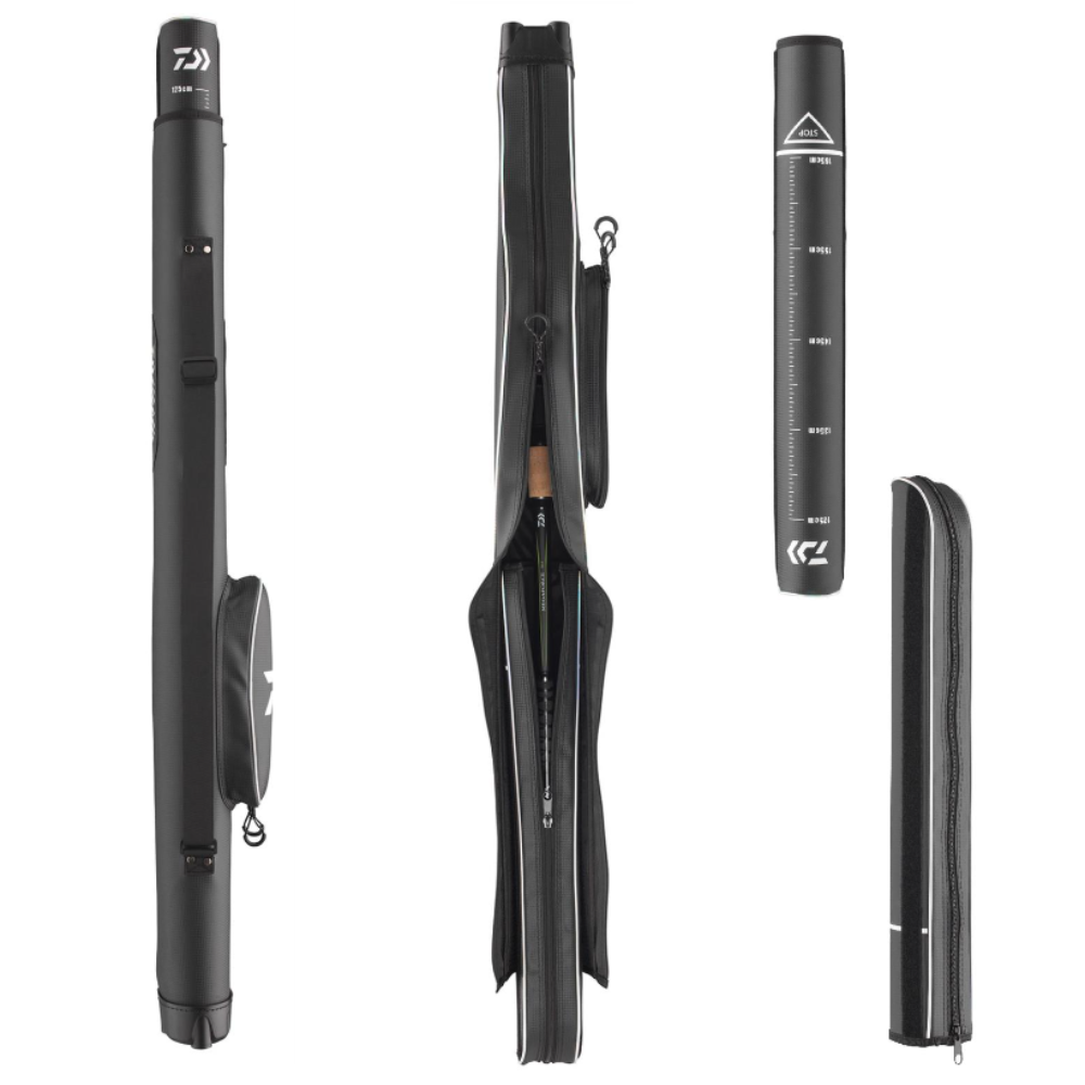 Das Daiwa Extension 1 Rod Bag ist für eine montierte Rute ausgelegt. Die leichte Semi-Hard Rutentasche in Kohlefaser-Optik mit festem Boden begeistert. Durch die spezielle Konstruktion kann das Futteral für eine montierte Rute von 2.10m bis 3.10m Länge verwendet werden. Der obere Teil kann einfach mittels Klettverschlusses in der Länge angepasst werden.