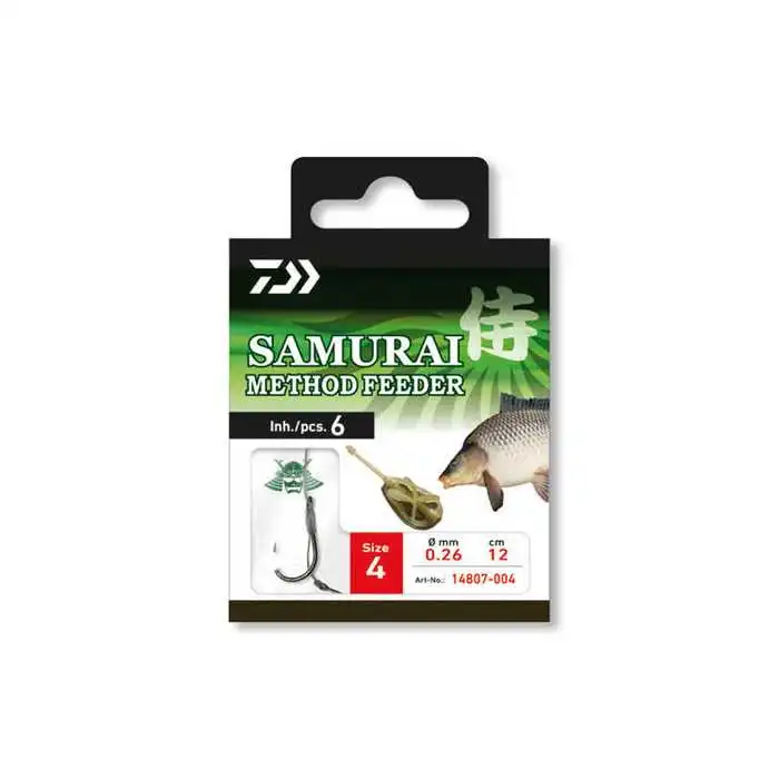 Mit den Samurai Vorfachhaken wird ein komplettes Programm gebundener Vorfachhaken, jeweils genau abgestimmt auf den zu beangelnden Zielfisch angeboten.