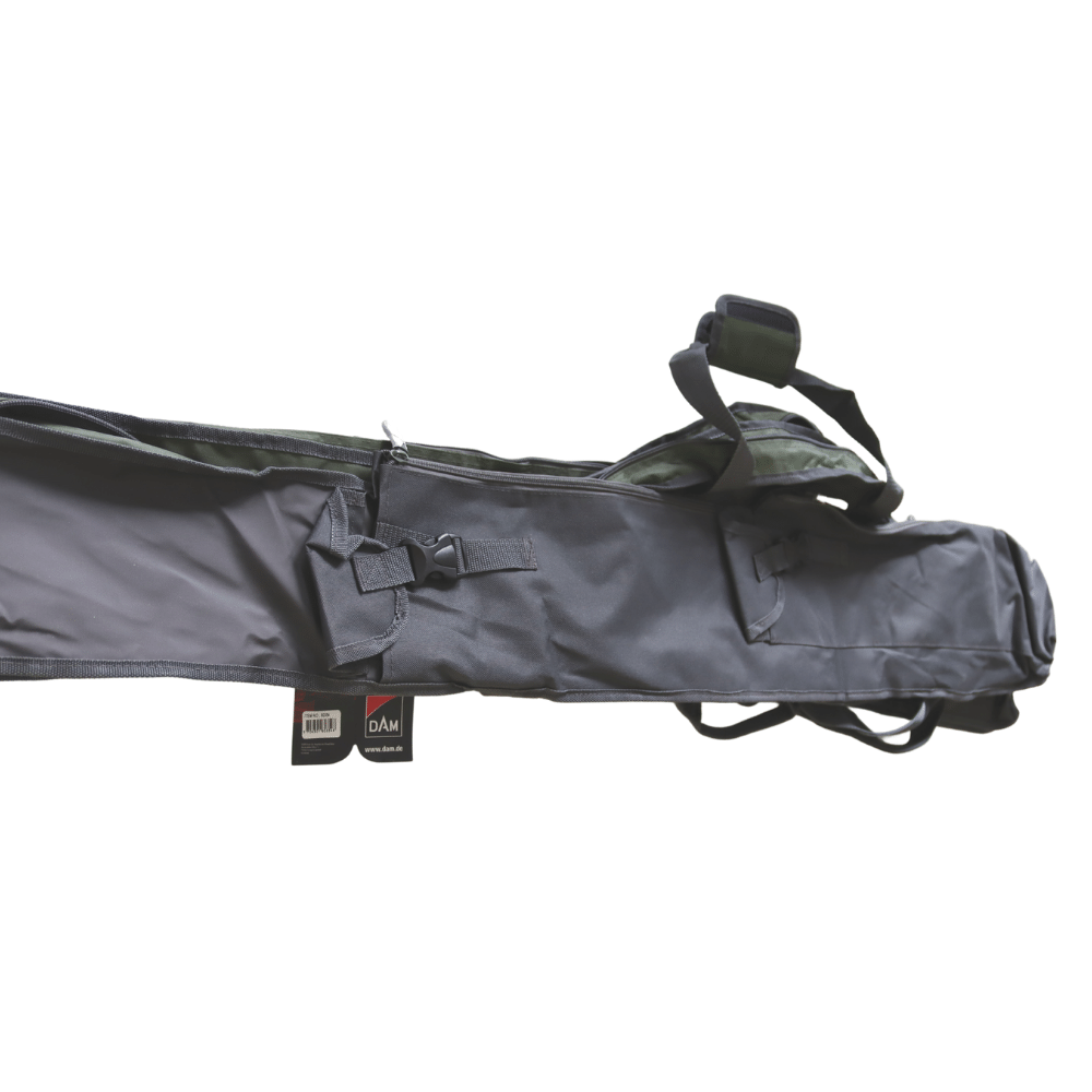 Auf beiden Seiten bieten die Außentaschen genügend Platz für ein Rod Pod oder einen Kescher. Zusätzliche offene Außentaschen eignen sind ideal für die Platzierung von Banksticks. Außerdem kannst du mittels speziellen Befestigungsgurten sogar einen Regenschirm befestigen. Das durchdachte Tragesystem umfasst einen Standardgriff und ein sehr praktisches “Backpack”-System, womit die Rutentasche als Rucksack getragen werden kann.