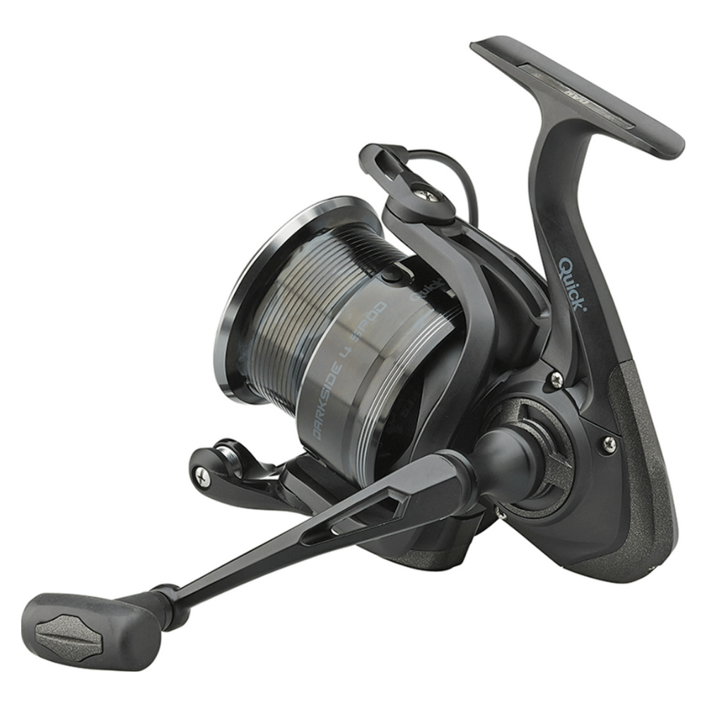 Die Darkside 4 wurde unter Verwendung der bewährten Quick-Rollengrößen und größeren Getriebe entwickelt. Mit einer hohen Schnureinzugsgeschwindigkeit von 110 cm pro Drehung des Griffs, einer speziell für Spods entwickelten Spule, drei Schnurclips aus Metall und einem großen TPE-Griffknopf wurde jeder Aspekt dieser Rolle auf ein hervorragendes Preis-Leistungs-Verhältnis abgestimmt.