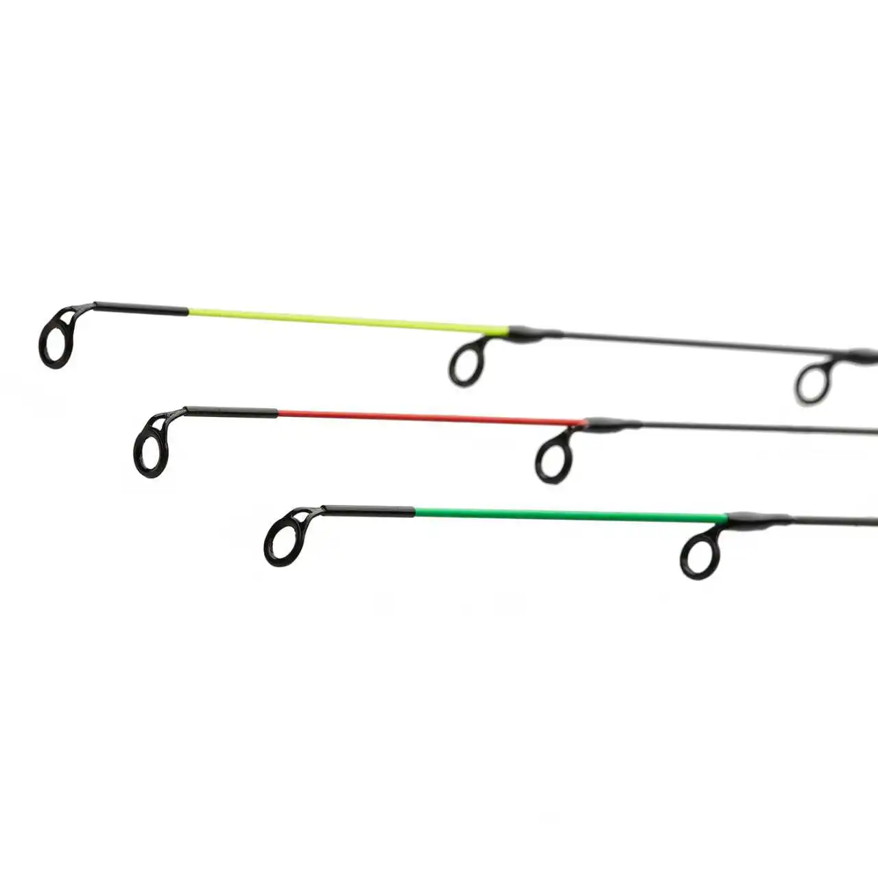 Die 3 Kohlefaser-Einsteckspitzen zeigen zuverlässig auch leichteste Zupfer an und federn Kopfstöße und schnelle Bewegungen der Fische im Drill perfekt ab.