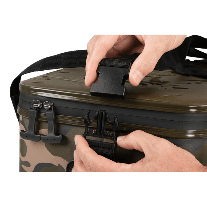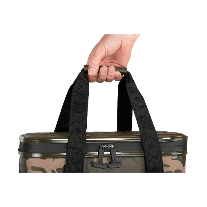 Die Tasche ist in der einzigartigen Fox Camo-Tarnfarbe designt und verfügt über hochqualitative 10 mm Reißverschlüsse sowie einem speziell überlappenden Gussdeckel in Khakigrün. Außerdem ist die Cool Bag mir hochrobusten Polyester-Tragegriffen und ergonomischen Reißverschlussgriffen ausgestattet.