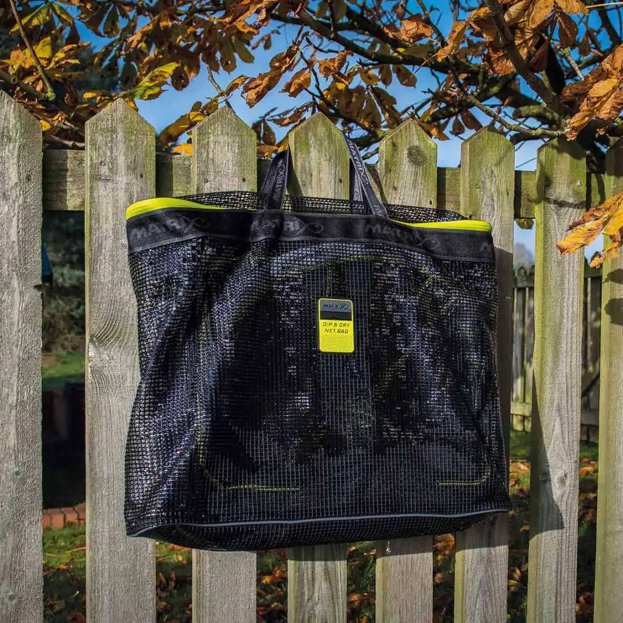 Die Dip & Dry Net Bag wurde speziell dafür entworfen damit du deine Setzkescher und Kescherköpfe in das Desinfizierbecken, an den kommerziellen Teichanlagen, eintauchen kannst. Natürlich können auch mehrere Netze gemeinsam eingetaucht werden – du brauchst also nicht für jedes Netz einen separaten Netzbeutel! Um Wasserschäden zu vermeiden besteht der Netzbeutel aus einem gummibeschichteten Netz.