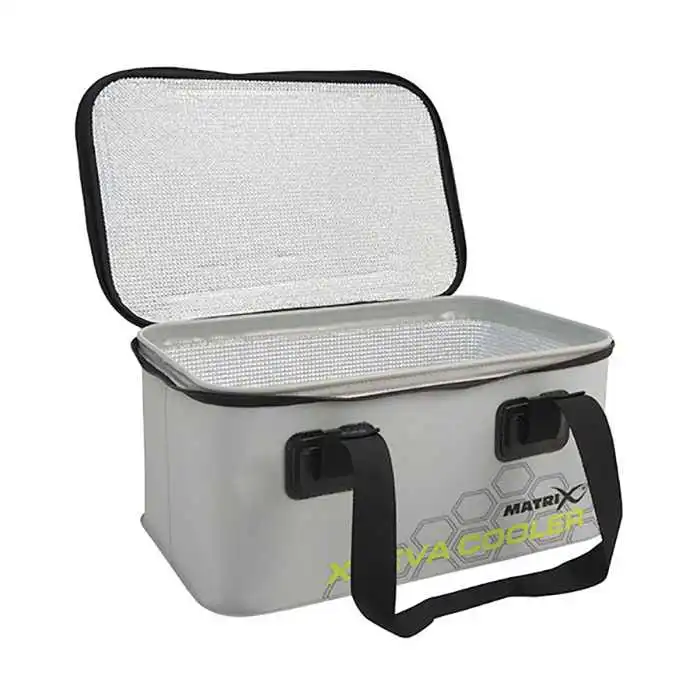 Die Fox Matrix EVA XL Cooler Bag Light Grey eignet sich ideal zum Lagern von größeren Futtermengen. Durch die hellgraue Farbe der Tasche wird das Sonnenlicht reflektiert und die Tasche bzw. der Inhalt erhitzt sich nicht so leicht. Um für zusätzliche Kühlung zu sorgen ist der Innenbereich mit Folie ausgekleidet.