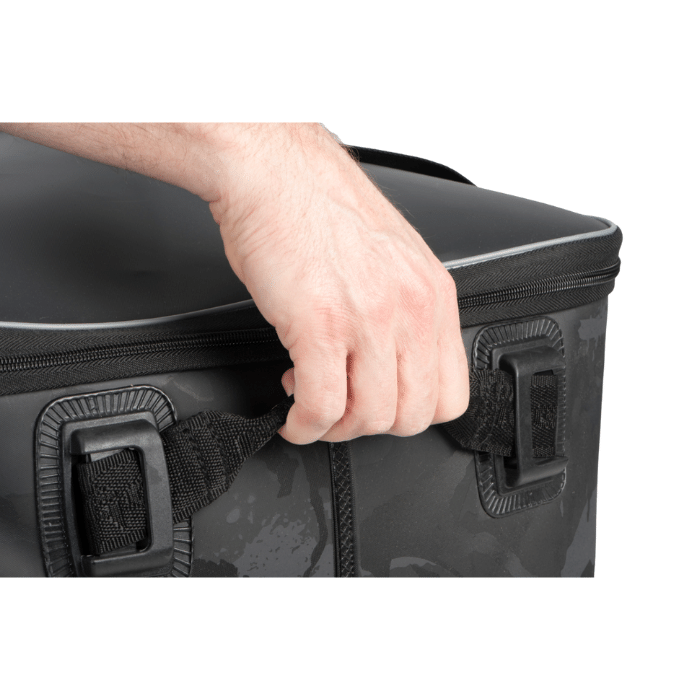 Die Camo Welded Bag in der Größe XXLarge fasst 2 x Fox Rage Large Welded Bags (Nicht im Lieferumfang enthalten!). Außerdem verfügt die Tasche über Handgriffe auf der Oberseite und an den Seiten für ein erleichtertes Tragen. Zum Unterstützen von schweren Inhalten gibt es verstärkte Seitengurte.