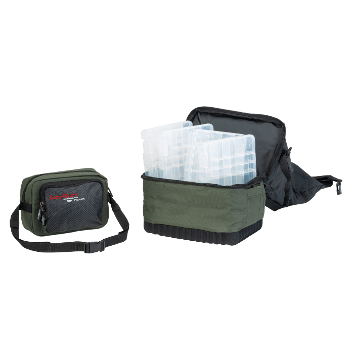 Der obere Teil des Iron Claw Dry Packer ist aus Heavy Duty PVC gefertigt und mittels Rollsystem wasserdicht verschließbar. Im separaten unteren Fach des Rucksacks befinden sich vier Boxen. Zudem ist die frontseitig aufgebrachte Tasche mittels Clips abnehmbar und lässt sich durch den angebrachten Gurt auch separat als Bauchtasche einsetzen.