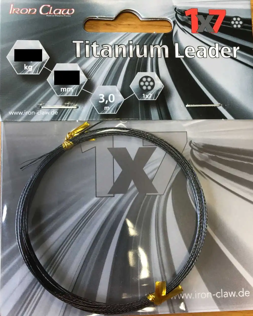 Iron Claw 1×7 Titanium Leader ist ein aus 7 Litzen geflochtenes Titan-Vorfach, welches aufgrund der Materialbeschaffenheit beinahe knickfrei bleibt und natürlich vollkommen hechtzahnsicher ist. Trotz der Eigenschaft, dass es sehr knickbeständig ist, ist es durch den Aufbau sehr flexibel und eignet dadurch ausgesprochen gut für Kunstköder, deren Lauf durch ein zu steifes Vorfach eingeschränkt werden könnten, wie zum Beispiel Wobbler.