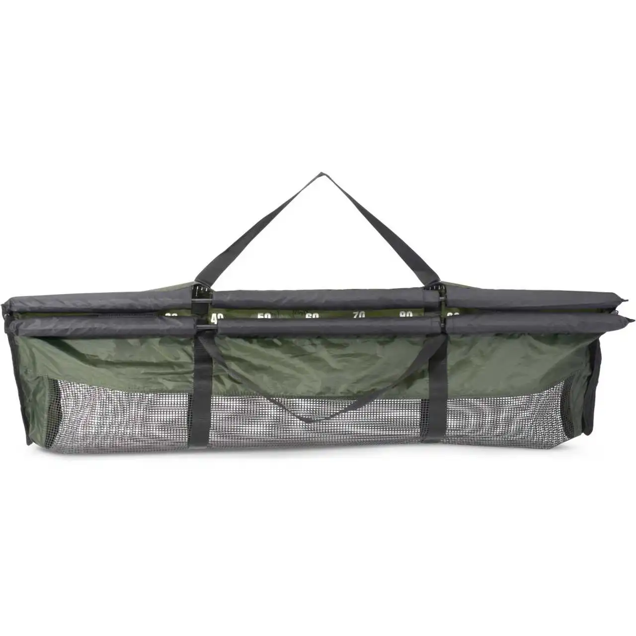 Universell einsetzbare Wiegeschlinge, die sich auch als Landehilfe und zum kurzzeitigen Hältern eines gefangenen Fisches eignet. Ausgestattet mit einem aufgedruckten Maßband (0-120 cm), an den oberen Streben angebrachten Auftriebskörpern mit Klettverschluss und seitlich gegen unbeabsichtigtes Öffnen gesicherten Reißverschlüssen. Zudem gehören natürlich noch umlaufende Gurte zum Einhängen an der Waage zur Ausstattung des Cradles. Auch eine Transporthülle befindet sich im Lieferumfang.