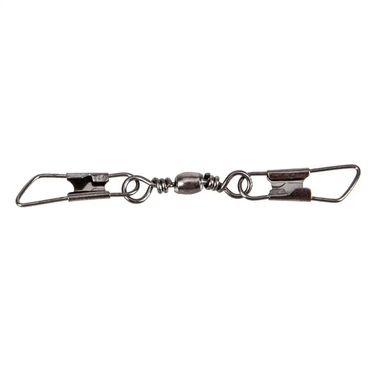 Bei diesem Spezial Doppelwirbel muss werde das Vorfach noch die Angelschnur verknotet werden. Da der Doppelwirbel zwei Sicherheitskarabiner besitzt kannst ganz simpel dein Vorfach sowie deine Hauptschnur einhängen und superschnell wechseln.