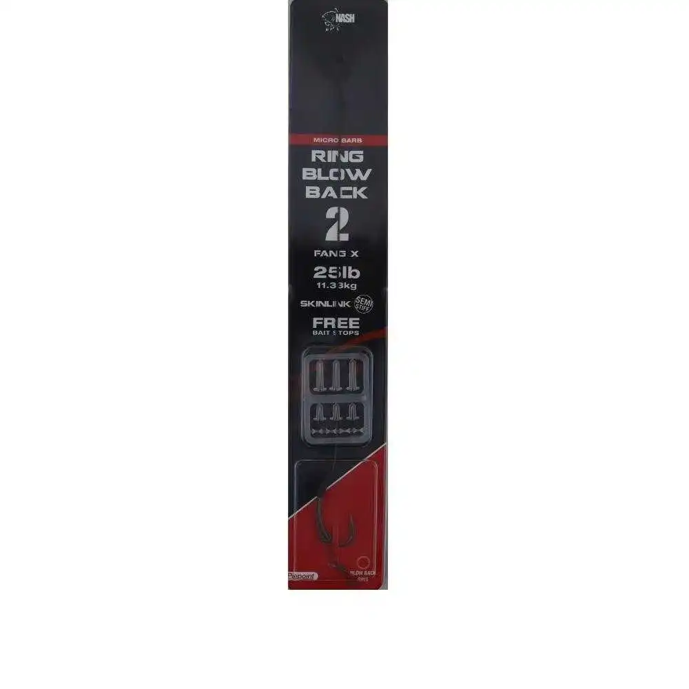 Kevin Nash’s Original-Konzept des Blow-Back-Rigs – mit optimierter Bewegungsfreiheit des Köders und dem rasch eindrehenden Fang X Haken durch den freilaufenden Ring – aggressives Haken von scheuesten Fischen garantiert.