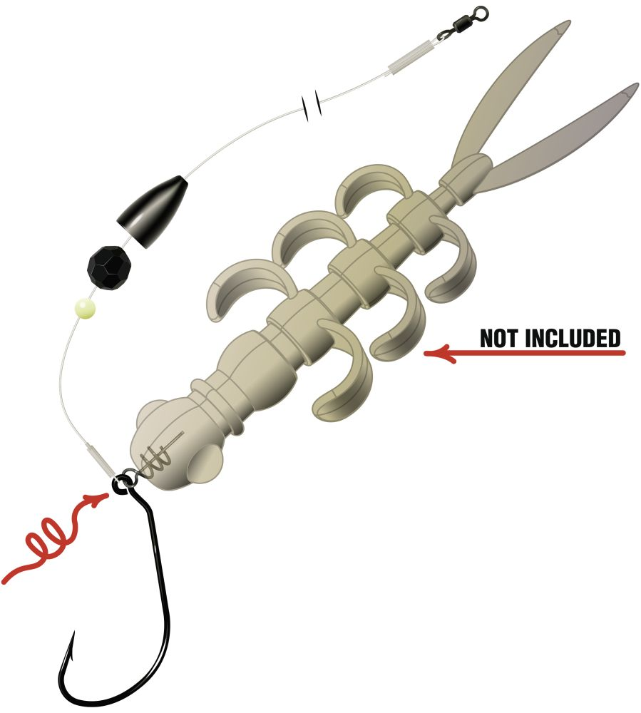 Dieses Rig bedient das Angeln im Carolina style. Dies ist besonders für träge Räuber zu empfehlen und kann langsam über den Gewässergrund geführt werden, wobei ein Gewicht und eine Perle mit einem gewissen Abstand vor dem Köder platziert sind. Einfach aus der Verpackung nehmen, den Köder einhängen und schon kann es losgehen.