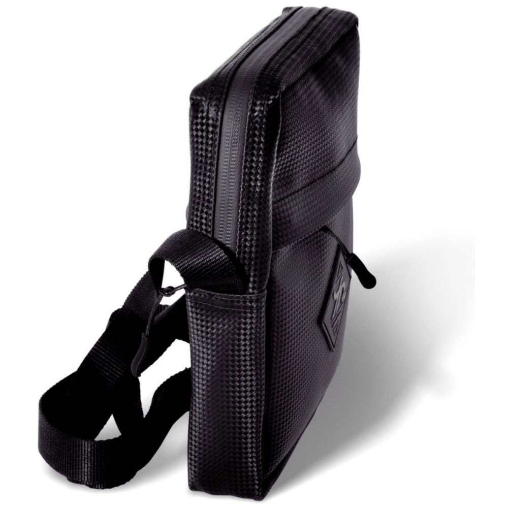 Spezielles PVC Material mit Carbon-Oberfläche, wasserabweisend. Versehen mit wasserdichtem Reißverschlussystem.