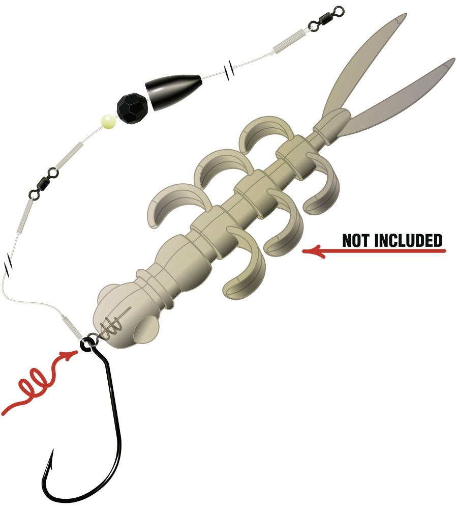 Dieses Rig ermöglicht dir das Fischen im Texas style. Dies ist besonders für träge Räuber zu empfehlen und kann langsam über den Gewässergrund geführt werden, wobei ein Gewicht und eine Perle direkt vor dem Haken platziert sind.