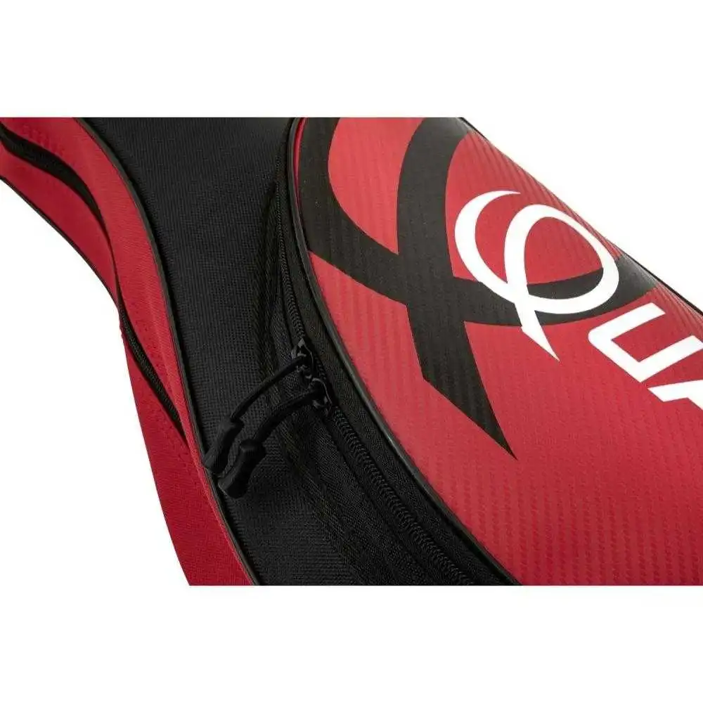 Das ist nicht nur praktisch sondern auch ein Blickfang. Ausgestattet mit einem gepolsterten Tragegurt und einem gummierten Tragegriff sorgt es für eine angenehme Handhabung. Die moderne Carbonoptik auf den Außentasche rundet das Ganze ab, denn das Auge angelt ja schließlich auch mit.