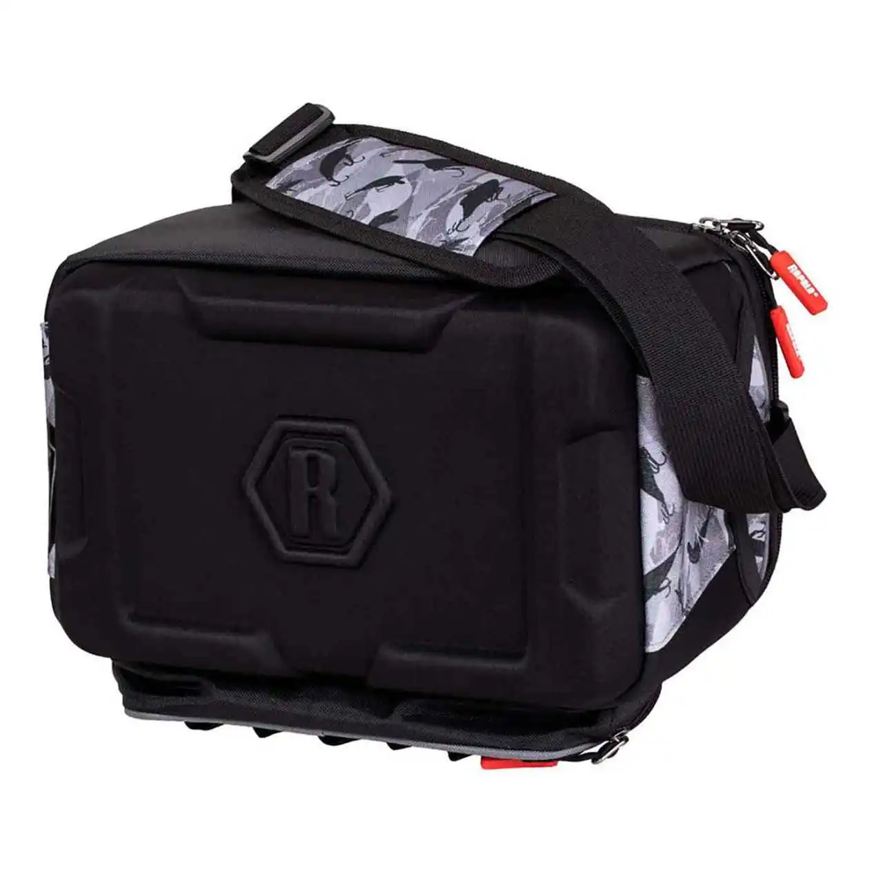 Der Lure Camo Tackle Bag Lite besteht aus wasserdichtem Rapala-Gewebe im Lure Camo-Design und hat einen strapazierfähigen EVA-Boden, um das Eindringen von Wasser zu verhindern. Das Bag hat Platz für vier 3600er Tackle-Boxen in der Tasche und eine oben für den schnellen Zugriff.