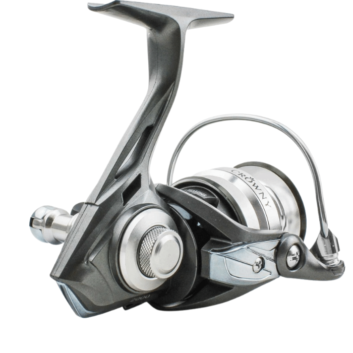 Extreme Leichtbauweise, hohe Bremskraft dank Carbonbremsscheiben (Fast Drag), präzise Schnurverlegung und ein seidenweicher Lauf, kennzeichnen diese meisterliche Spinnrolle. Die Kombination aus gunsmoke, schwarz und silber (Aluminiumkomponenten), macht aus der Crowny einen optischen Leckerbissen der Extraklasse. Abgerundet durch das zuverlässig arbeitende Getriebe und den ausbalancierten Rotor, bleiben keine Wünsche mehr offen.