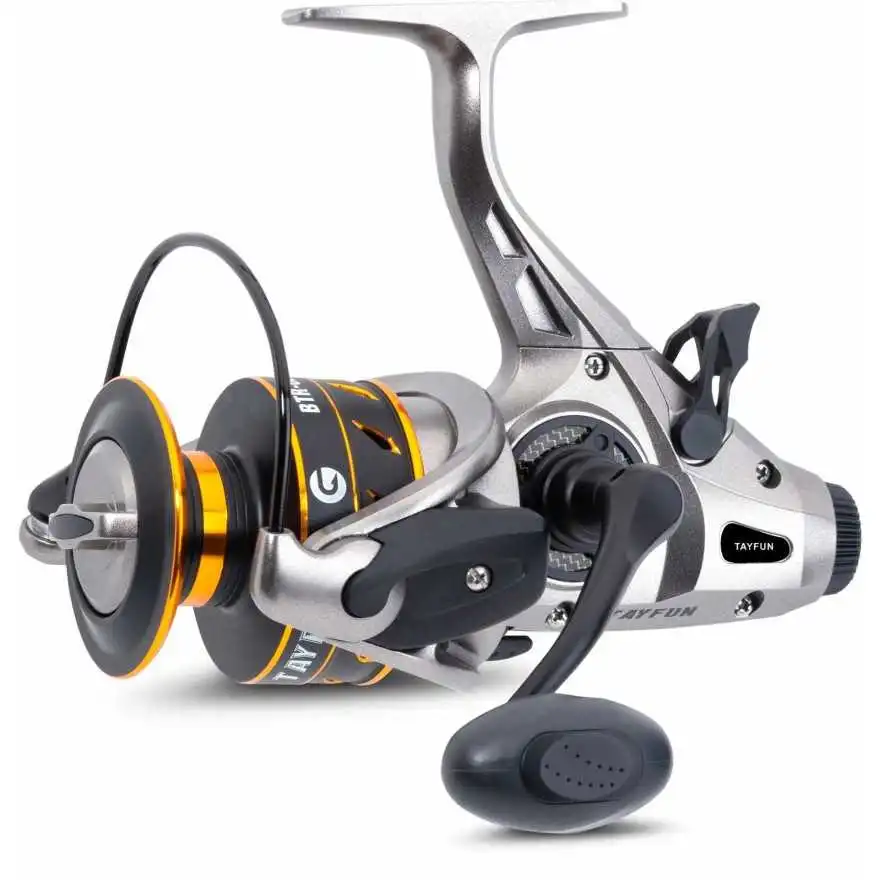 Die Tayfun Rollenserie ist Ergebnis wochenlanger, akribischer Präzisionsarbeit. Sie zeichnet sich durch ein sehr schönes Design und zuverlässige Qualität aus. Ein ruhiger, stabiler Lauf, exakte Schnurverlegung und ein präzise arbeitender Freilauf sind Kennzeichen der neuen Tayfun Serie. Egal auf welche Fischart Sie angeln, Hier haben Sie es mit einem echten Allrounder zu tun. Die Rollenserie wurde mit stabilem Aluminium-Kurbelarm versehen, einem extra dicken Schnurbügel und einer optisch sehr ansprechenden Aluminiumspule.
