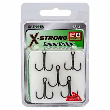 Der Sänger X-Strong Camou Drilling ist sehr stabil und scharf und eignet sich deshalb ideal für Köderfisch-Montagen und als Drilling für Spinnfisch-Köder.