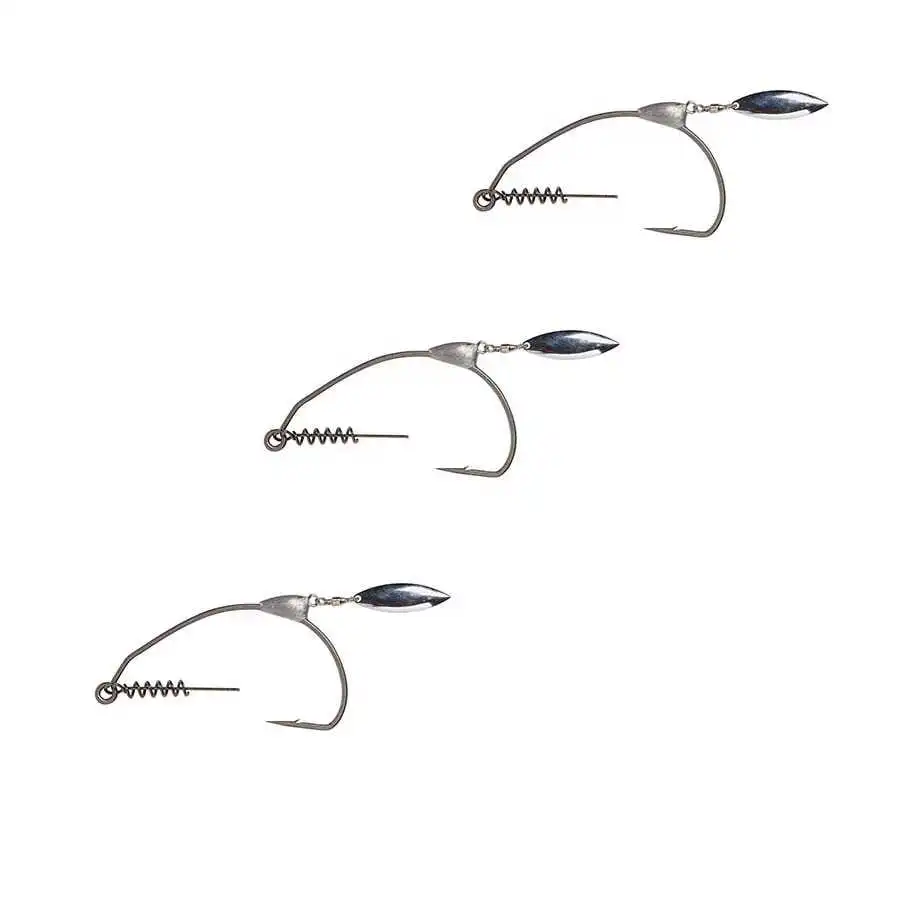Einzelhaken mit extrem weitem Bogen, Cork Screw, Belly Weight und Underspin Blade!