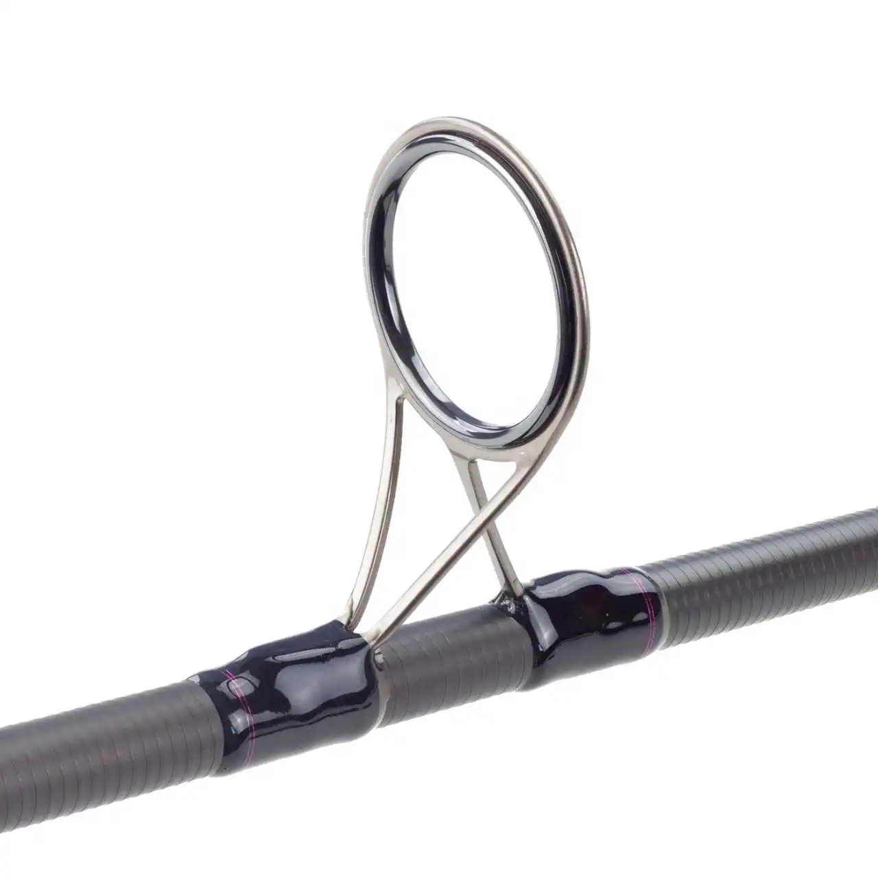 Sowohl die Blanks dieser Kampfruten, als auch die Ringwicklungen sind in einem edlen mattschwarzen Farbton gehalten. Die Wicklungen sind mit pinkfarbenen Zierwicklungen als optisches Highlight ausgestattet.