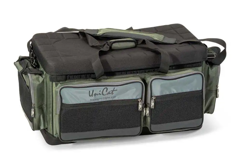In diese große Wallertasche passt unglaublich viel Tackle. Nicht nur die Seitenteile der Treasure Chests sind versteift, sondern auch der Deckel ist aus einem festen Material hergestellt und erweckt den Eindruck einer Truhe. In den aufgesetzten Vortaschen finden ein Anaconda Tackle Chest M und ein Tackle Chest L ihren Platz. Die Haupttasche kann mit Trennwänden, welche einfach mittels