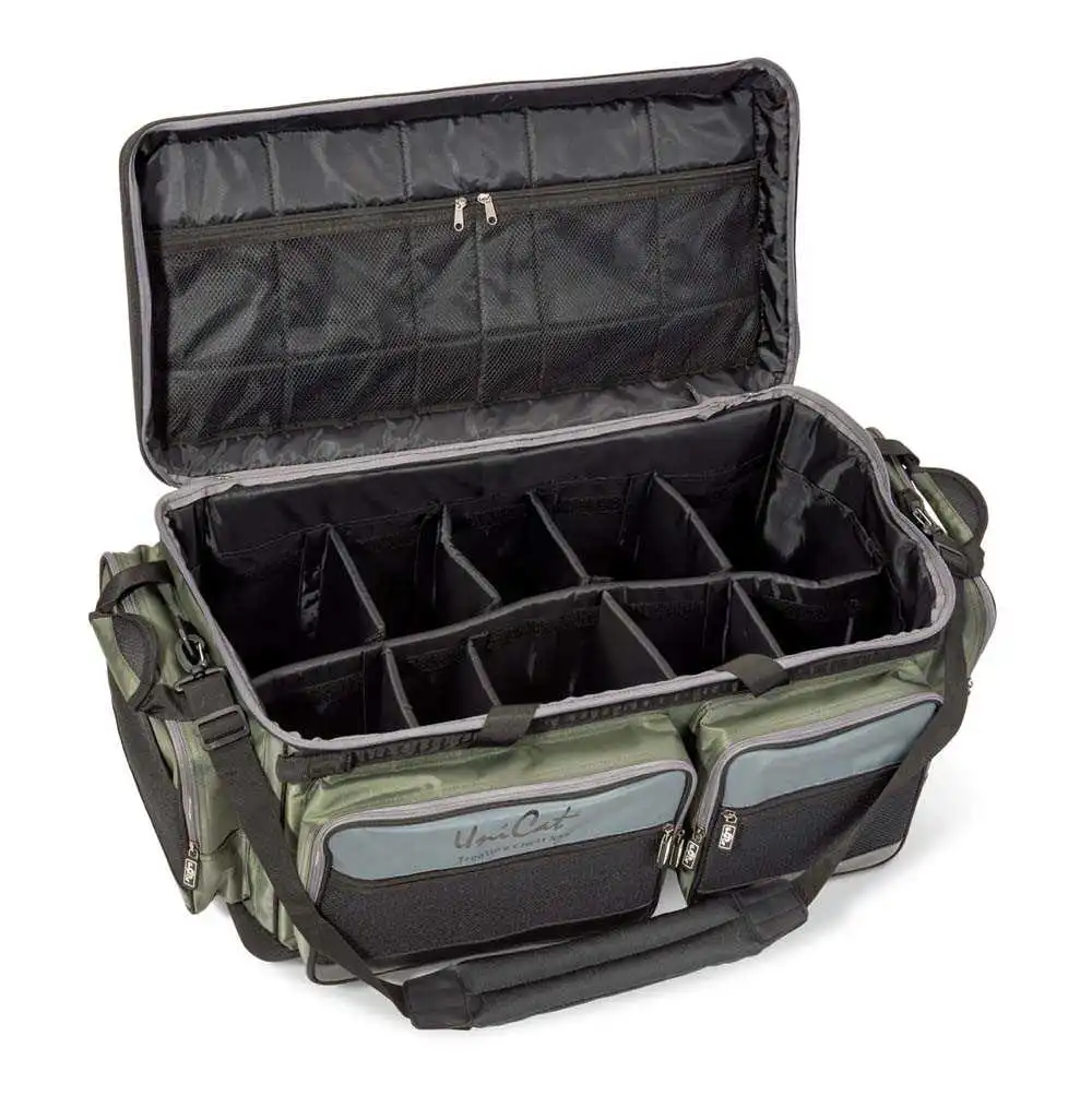 Klett befestigt und individuell unterteilt werden. Zudem sind sie mit seitlichen Tragegriffen, einem Haupttragegriff und einem Schultergurt ausgerüstet.