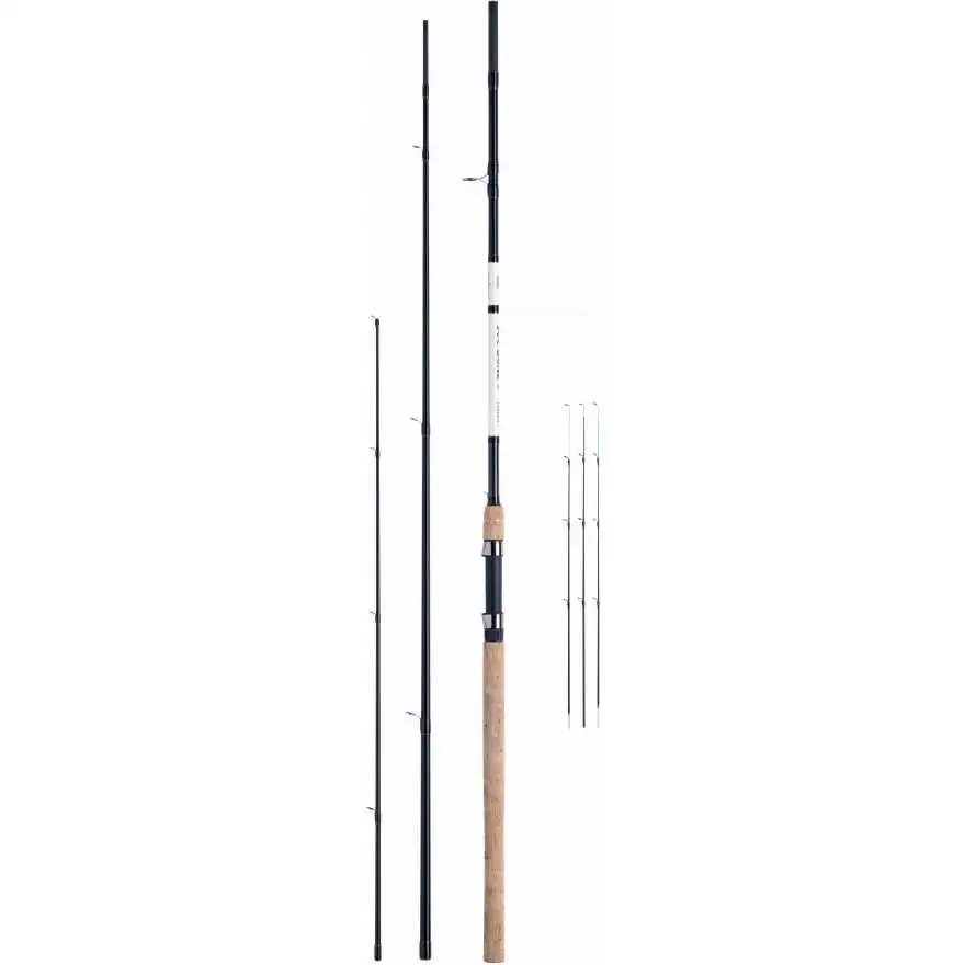 Eine gut ausbalancierte Feederrute, ideal geeignet zum Fischen mit schweren Futterkörben in Fließgewässern. Die Beringung ist so groß gewählt, dass auch problemlos mit Schlagschnur gefischt werden kann. Auch bei leichteren Futterkörben laden sich die Ruten sehr gut auf, um mit wenig Kraftaufwand große Wurfweiten erzielen zu können.